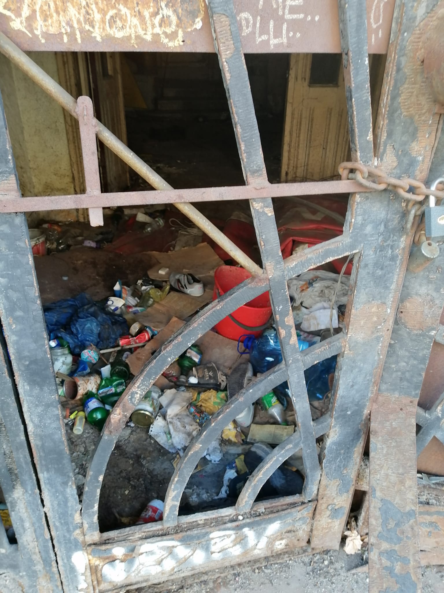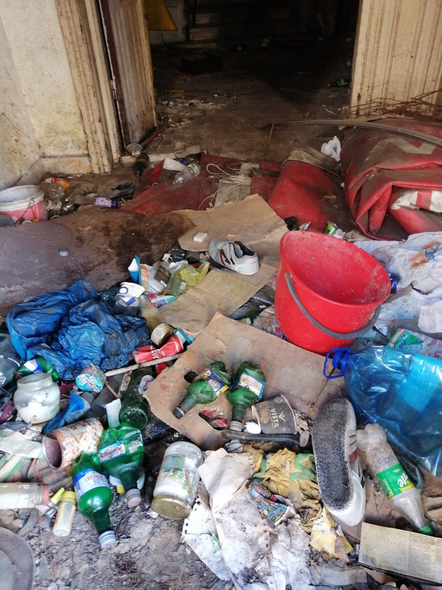 Oamenii străzii, care au pătruns în interior, au lăsat în urmă maldăre de gunoi.