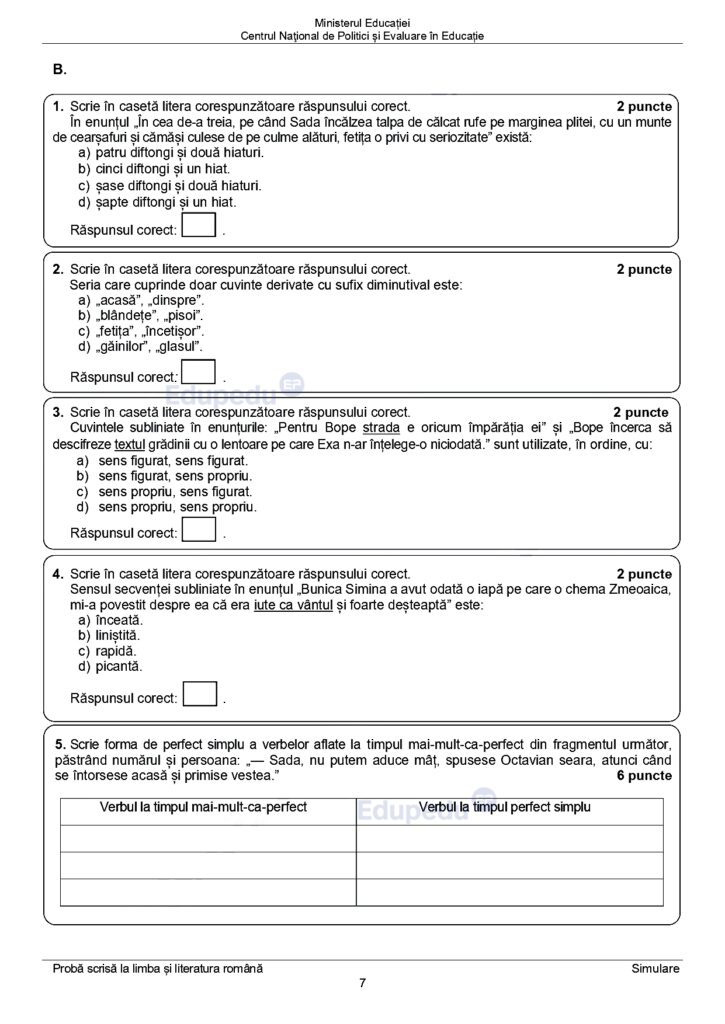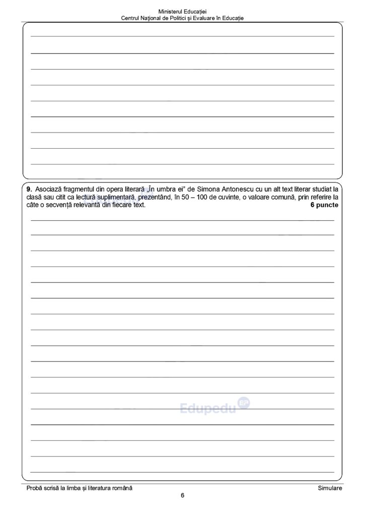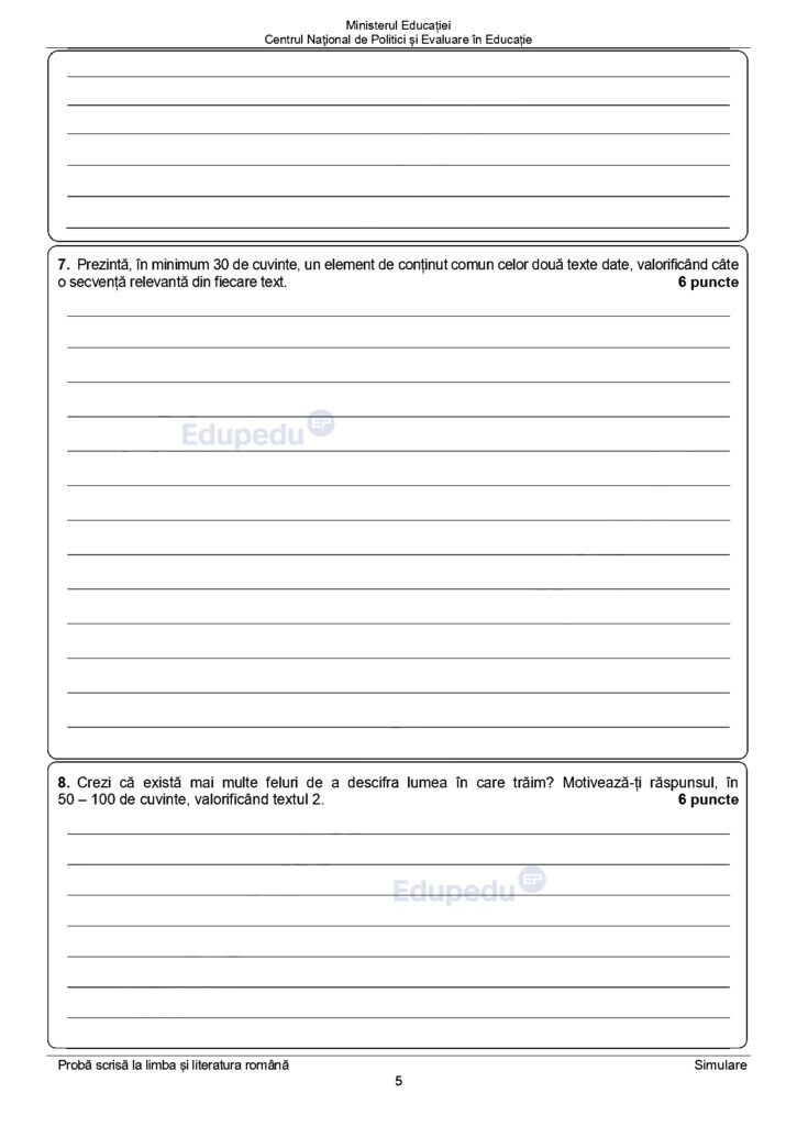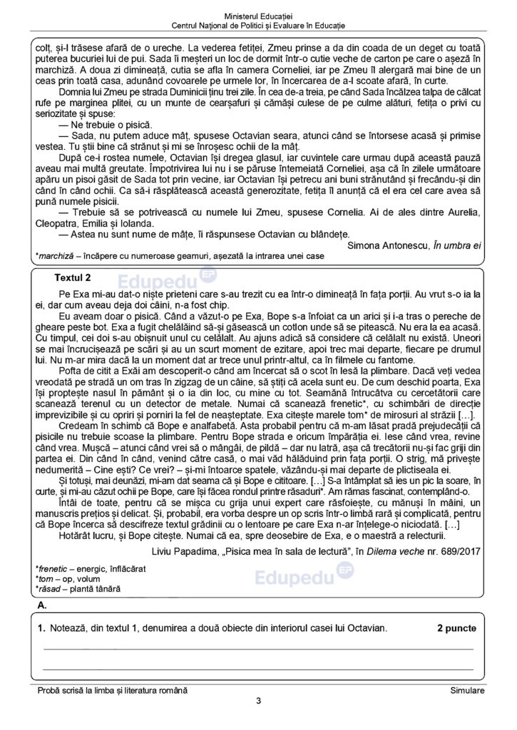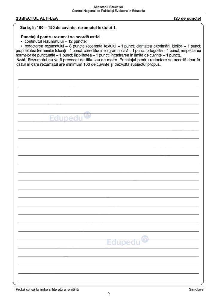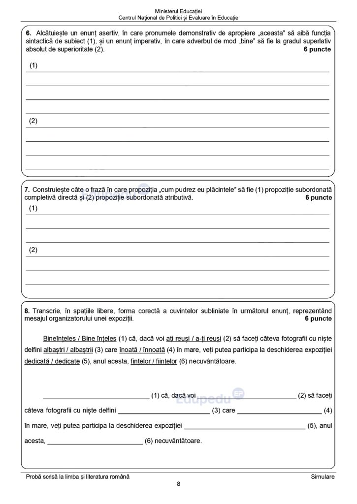 Subiectele la Limba română din cadrul simulării Evaluării naţionale: