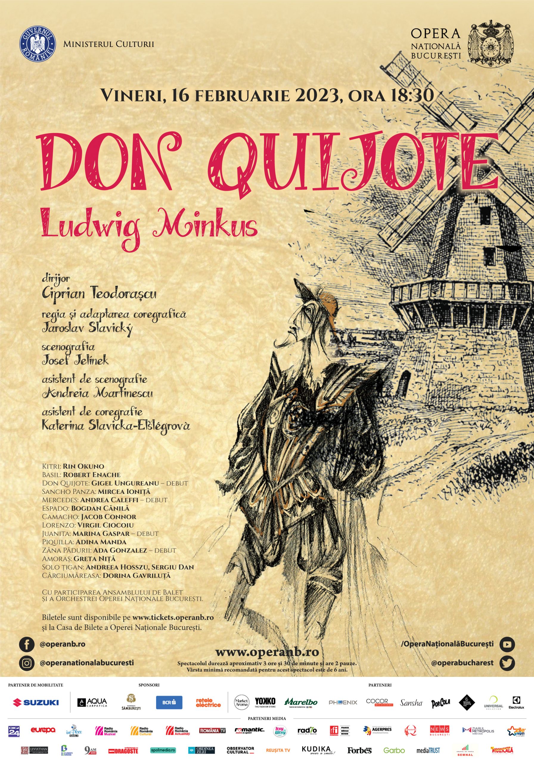 Vineri (16 februarie) și sâmbătă (17 februarie), ora 18:30, ONB vă propune în dublă reprezentație spectacolul de balet Don Quijote de Ludwig Minkus. Baletul Don Quijote este o producție inspirată de romanul omonim al lui Miguel de Cervantes.
