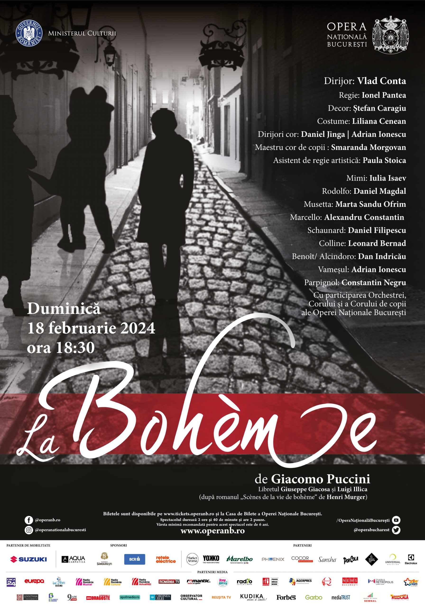 Duminică, 18 februarie, ora 18:30, are loc spectacolul de operă La Bohème de Giacomo Puccini. După romanul Scènes de la vie de bohème de Henri Murger, Giacomo Puccini a adus sub lumina reflectoarelor spectacolul de operă La Bohème, care surprinde, într-o autentică capodoperă muzicală, dragostea și sărăcia, consumate într-o noapte de poveste, în Ajunul Crăciunului, în cartierul Latin din Parisul primei jumătăți de secol XIX.