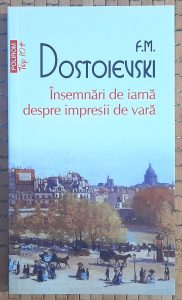 Cartea lui Dostoievski este despre oameni și nu despre locuri, doar că m-am tot întrebat în timpul lecturii dacă a avut cu adevărat sens această călătorie a sa de-a lungul continentului, „toată această Europă de comandă și comandată” cum o numește el, când ar fi putut la fel de bine să privească pe fereastra casei sale din Sankt Petersburg pentru a-l zări peste tot pe acel bonhomme universal, preocupat mare parte din viață să mascheze sau să-și mascheze ipocrizia și snobismul cu postere viu colorate, cuvinte meșteșugite, paiete sau smog, în funcție de zona din care provine.
