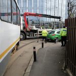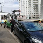 Blocat în virajul la dreapta de o mașină parcată aiurea, tramvaiul a stat zeci de minute, până la intervenția Poliției și ridicarea mașinii.