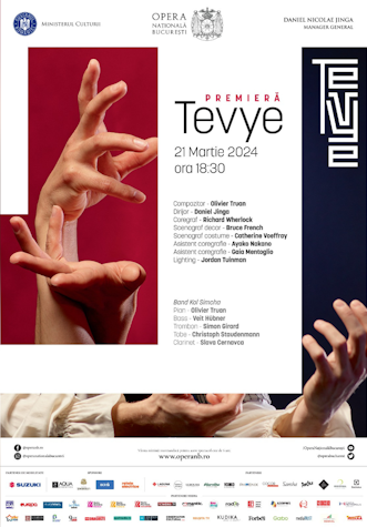 Scena Operei Naționale București prezintă premiera românească a spectacolului Tevye, pe 21 martie, de la ora 18:30, montat într-o versiune de dans contemporan. Sub bagheta dirijorului Daniel Jinga, director general al ONB, veți râde cu Tevye, veți plânge cu el și veți ajunge să apreciați cel mai mare personaj al lui Sholem Aleichem într-o lumină cu totul nouă.