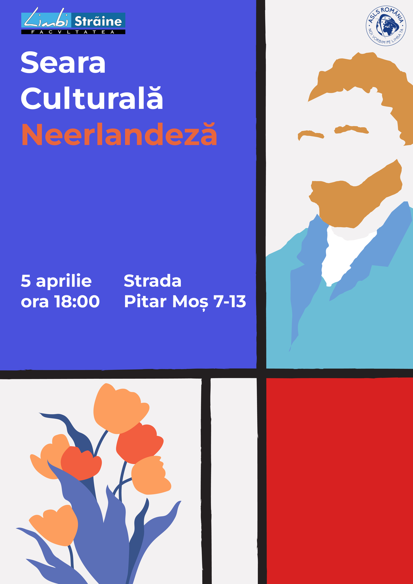 Asociația Studenților din Facultatea de Limbi și Literaturi Străine organizează pe data de 5 aprilie Seara Culturală Neerlandeză, eveniment ce are ca scop explorarea culturii neerlandeze prin diferite activități interactive și distractive.