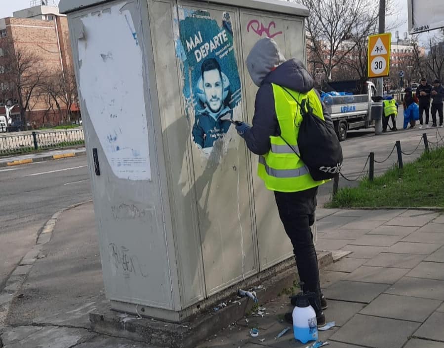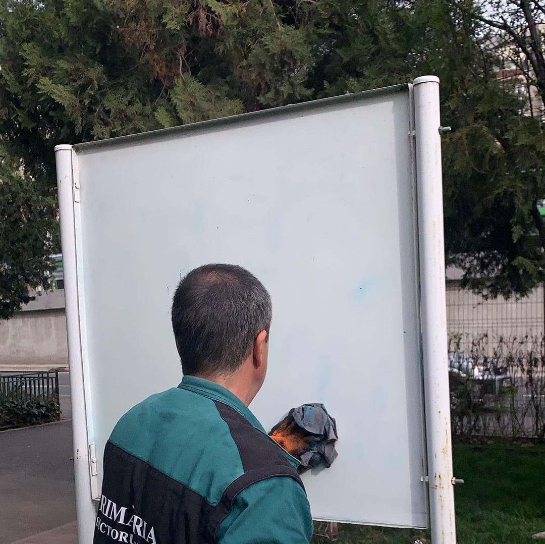 Se curăță stâlpii și alte obiecte de afișe, se șterg panourile de informare mâzgălite, mobilierul stradal, semnele de circulație, semafoarele, se scot buruienile, se matura si se vopsesc băncile.