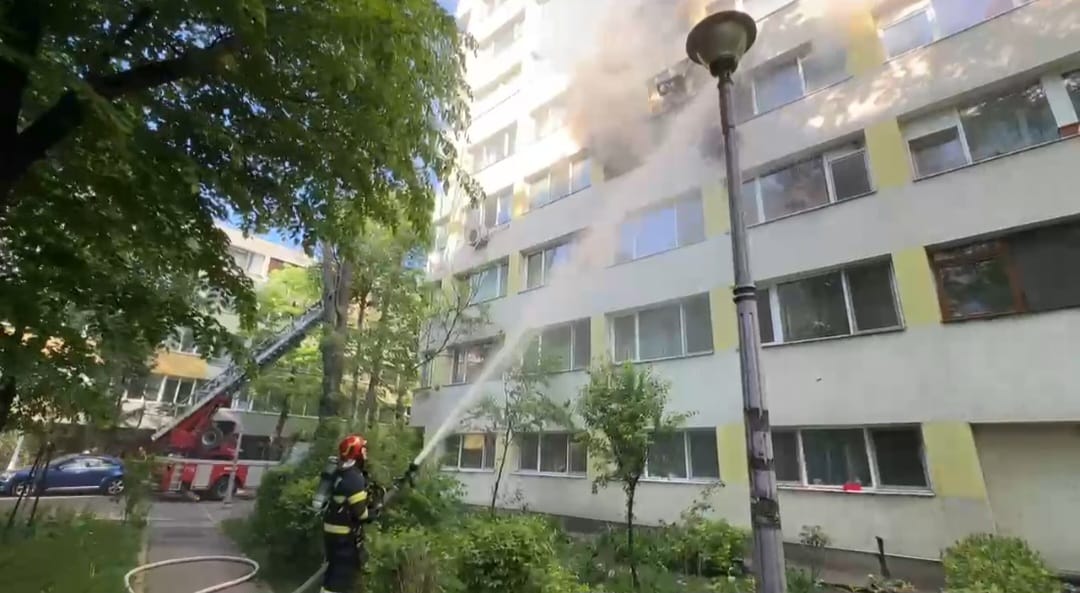 Pompierii intervin pentru stingerea unui incendiu produs la un apartament la etajul 3, pe Bulevardul Gara Obor, sectorul 2, municipiul București.
