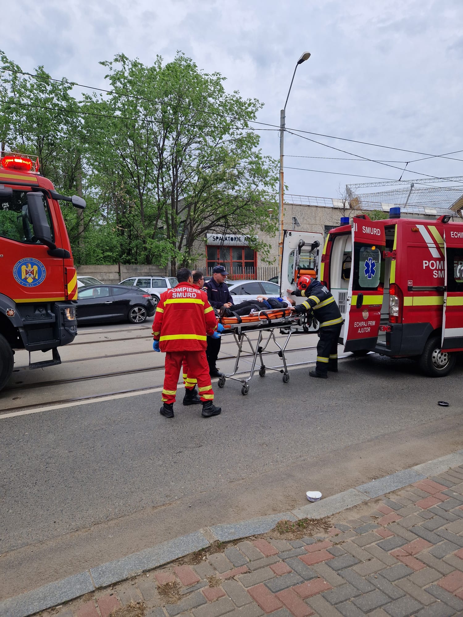 Un echipaj de prim ajutor de la ISU Bucuresti s-a prezentat la fata locului si a dus victima, constienta dar cu leziuni la nivelul capului, maxilarului si in stare de soc la spital.