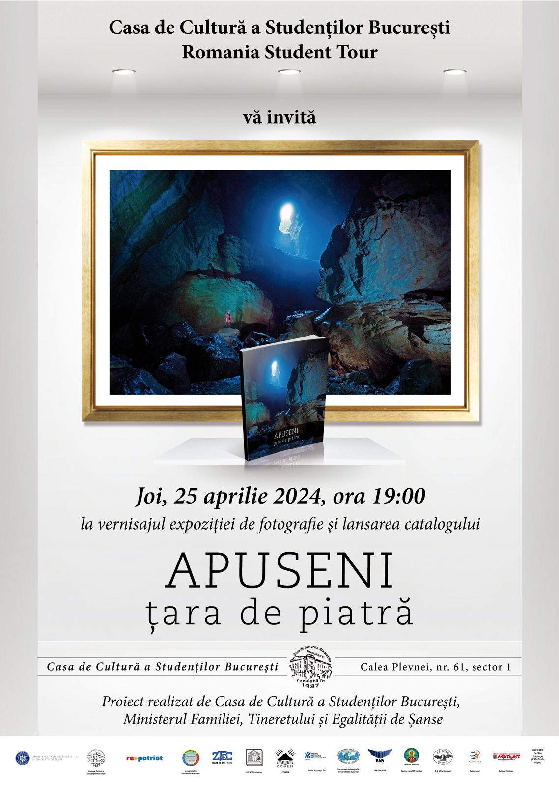 Joi, 25 aprilie, ora 19:00, la Casa de Cultură a Studenților din București va avea loc vernisajul expoziţiei şi prezentarea catalogului „Apuseni, țara de piatră” din cadrul proiectului Romania Student Tour.