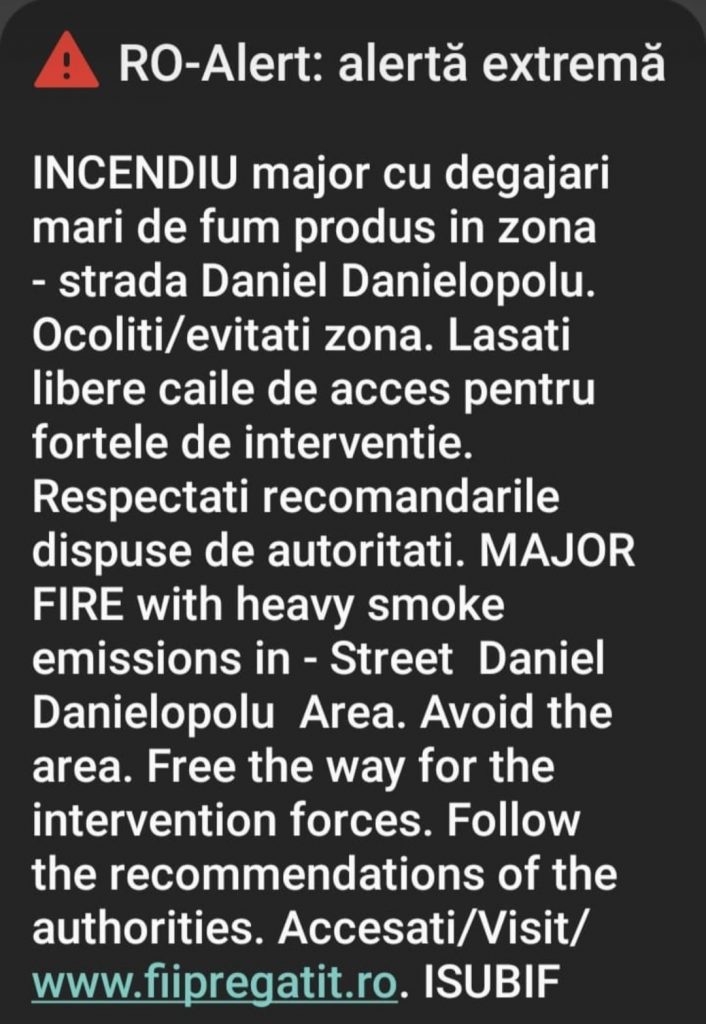 In urma cu scurt timp a fost emis un mesaj de avertizare prin sistemul RoAlert.