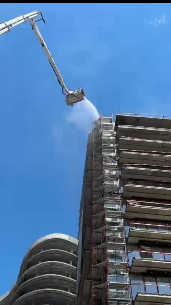 Incendiu produs la izolatia unei cladiri in constructie, str Daniel Danielopolu