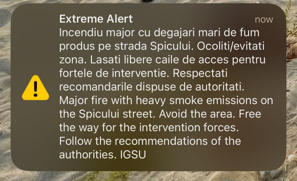 Update: Pentru informarea si avertizarea populatiei din zona a fost remis un mesaj prin sistemul RoAlert