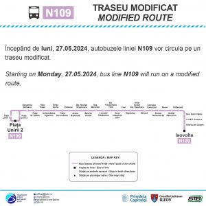 Linia de noapte N109, de la actualul capăt “Republica” – la “Isovolta” va fi prelungită, la solicitarea călătorilor, începând de luni, informează Asociaţia de Dezvoltare Intercomunitară pentru Transport Public Bucureşti – Ilfov (TPBI).