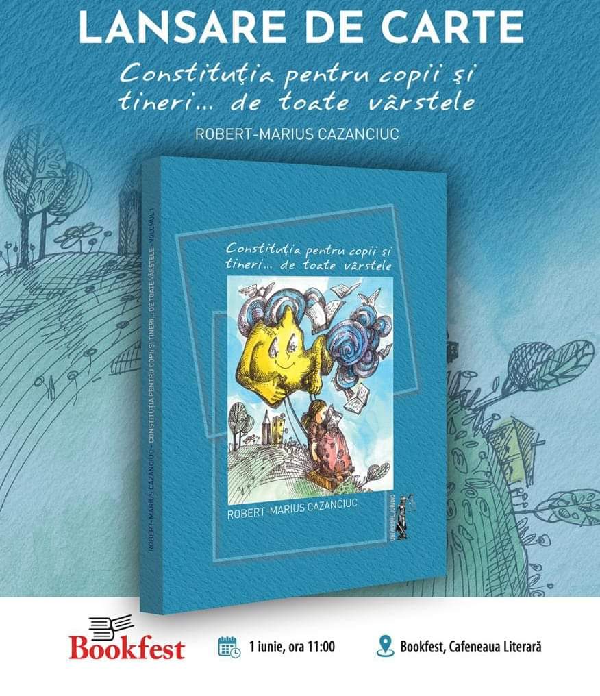 „Constituția pentru copii” este cadoul de 1 Iunie pentru toți cei mici, dar și cei mari, pe care îi aștept sâmbătă, de ziua lor, la Bookfest, unde vom putea discuta împreună despre Constituția României, legi și nu numai, spune Robert Cazanciuc, autorul volumului.