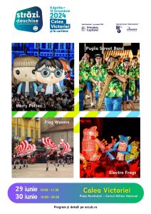 Sâmbătă, 29 iunie, și duminică, 30 iunie, Calea Victoriei va fi luată cu asalt de artiști internaționali din Italia, Franța și Spania ce vor susține spectacole itinerante în cadrul celui mai amplu proiect outdoor – „Străzi deschise, București – Promenadă urbană”, oferind un weekend estival electrizant, cu experiențe unice și vibrante pentru toți cei prezenți.
