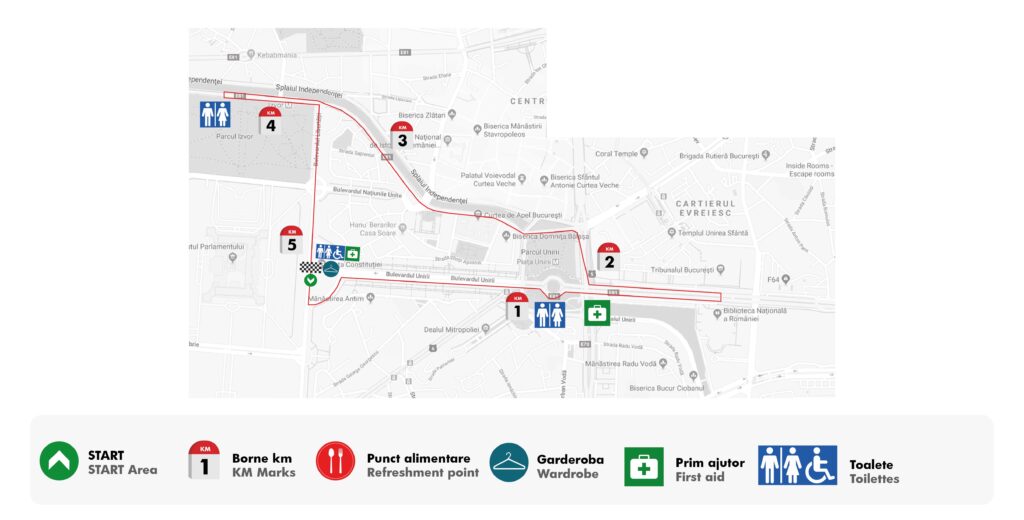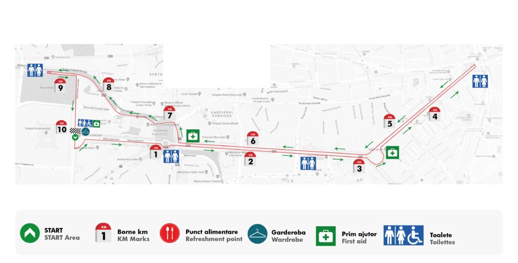 WC-urile sunt amplasate in zona de Start / Sosire si in zona apropiata fiecarui punct de hidratare.