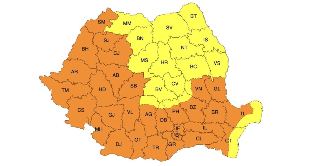 Potrivit Administraţiei Naţionale de Meteorologie, în judeţe din Banat, Crişana, Oltenia, Muntenia, zona continentală a Dobrogei, sudul Moldovei, vestul şi sud-vestul Transilvaniei şi local în Maramureş valul de căldură va persista, va continua să se extindă şi se va intensifica. Va fi caniculă, iar temperaturile maxime vor fi de 36…39 de grade, cu cele mai mari valori în vest şi sud. Disconfortul termic va fi accentuat, iar indicele temperatură-umezeală (ITU) va depăşi pragul critic de 80 de unităţi.