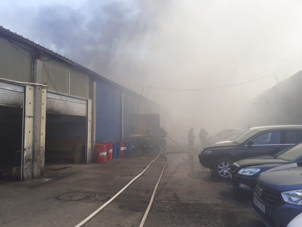 Pompierii ISU B If intervin pentru stingerea unui incendiu produs la un service auto, pe Șos. Electronicii, din sectorul 2 al Capitalei.