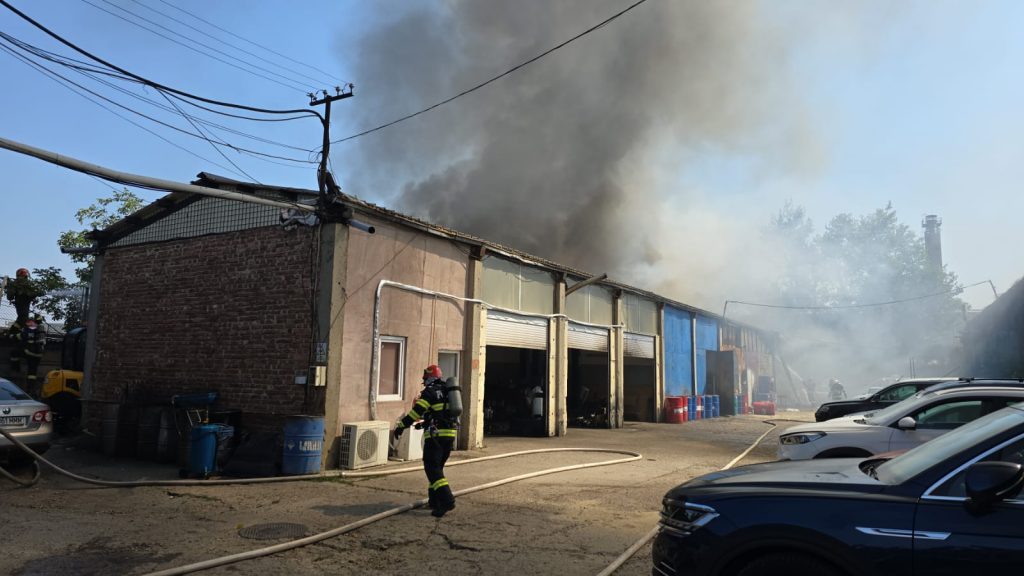 Incendiu produs la un service auto, pe Șos. Electronicii, din sectorul 2