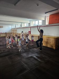 Tehnologia ca mijlocitor între corpul fizic și cel digital încurajează dezvoltarea abilităților cognitive și motorii ale copiilor într-un mod interactiv și inovator. Mișcându-se în fața ecranului de proiecție, copiii descoperă că acțiunile lor în mediul fizic pot da naștere unor forme și creații digitale fascinante, fiind stimulați astfel să exploreze noi calități de mișcare cu propriul corp, dar și în relație cu ceilalți prin exerciții ghidate de performerul Oana Băluță și de creatoarea vizualurilor interactive, Cristina Bodnărescu.