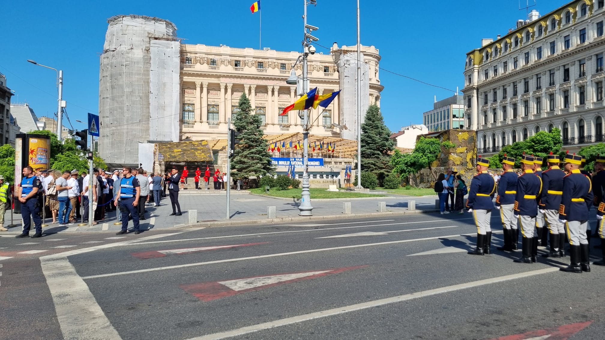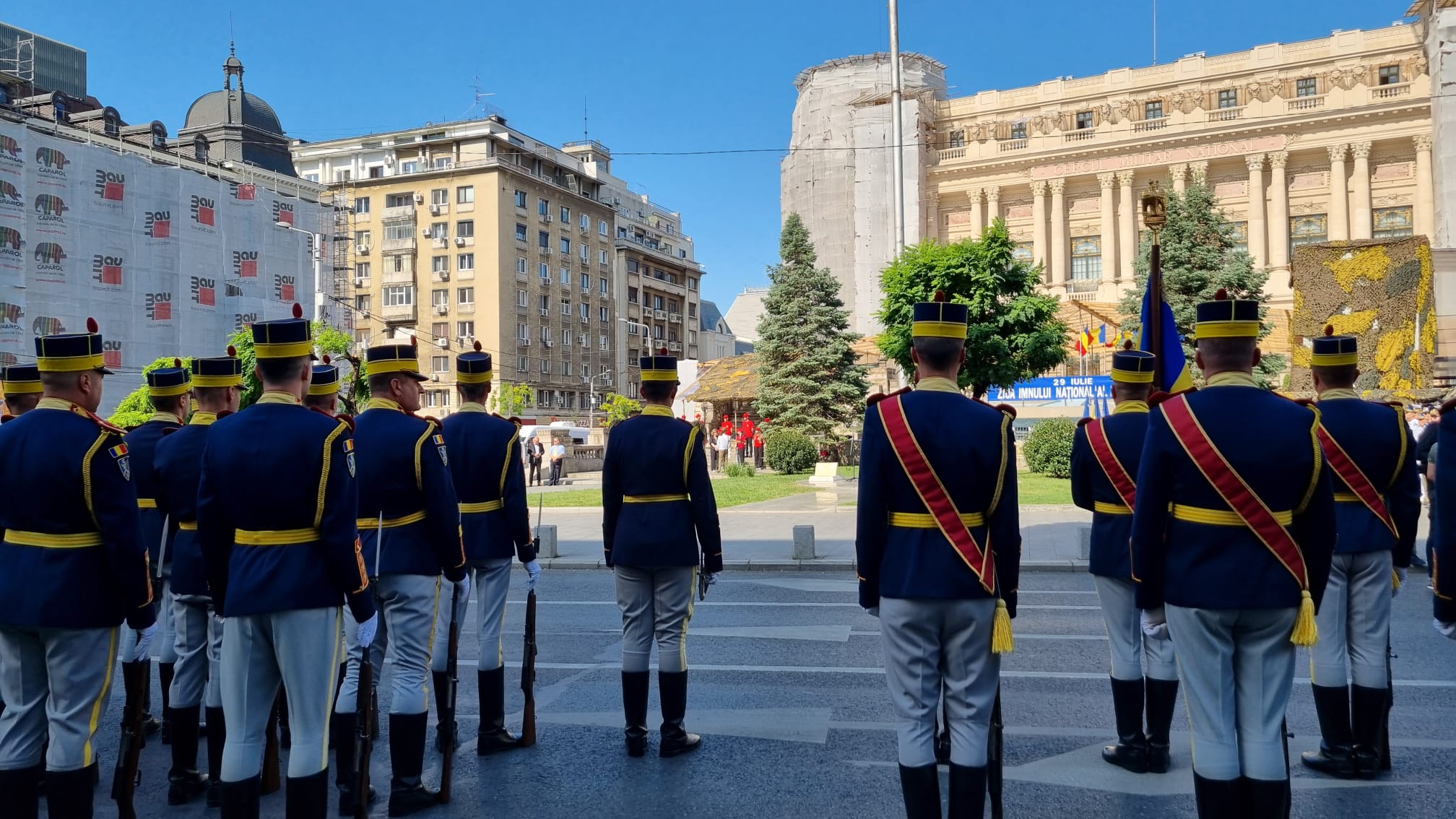 La Bucureşti, ceremonia dedicată evenimentului are loc în Piaţa Tricolorului, situată în faţa Palatului Cercului Militar Naţional.