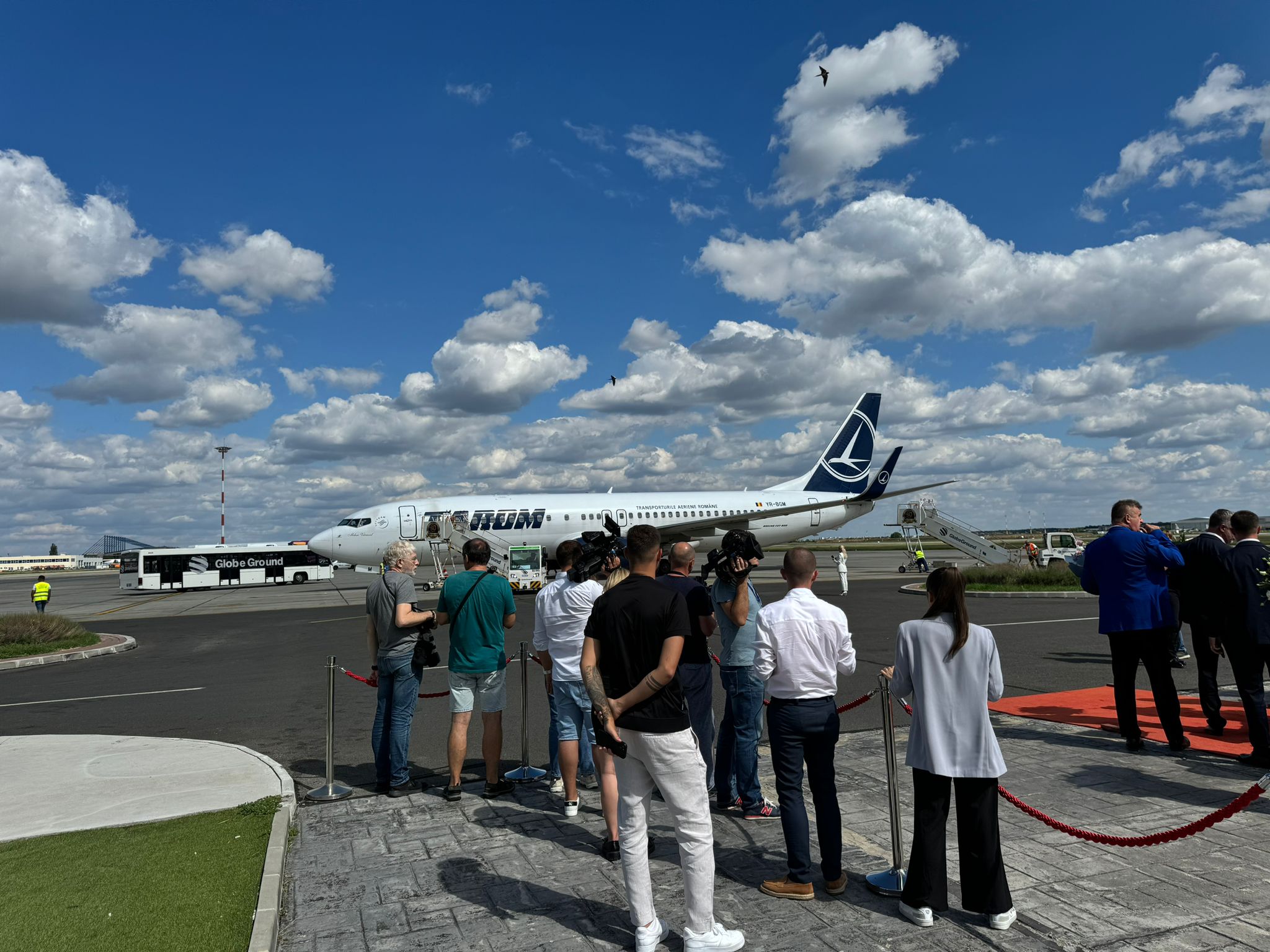 Ei sunt primiți la salonul prezidențial, de la Aeroportul Henri Coandă.