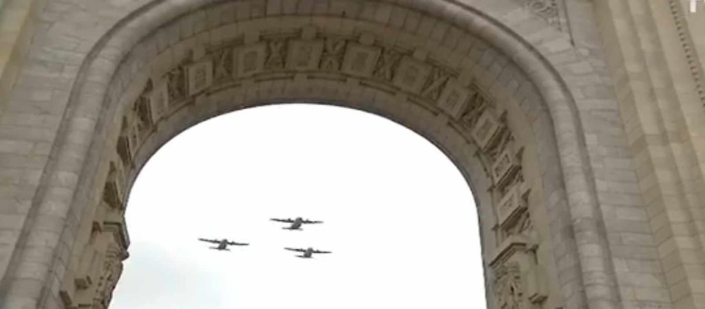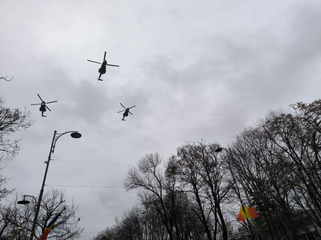 Piaţa Arcului de Triumf a fost survolată de aeronave aparţinând Ministerului Apărării Naţionale, Ministerului Afacerilor Interne, SMURD, Serviciului Român de Informaţii şi Aeroclubului României.