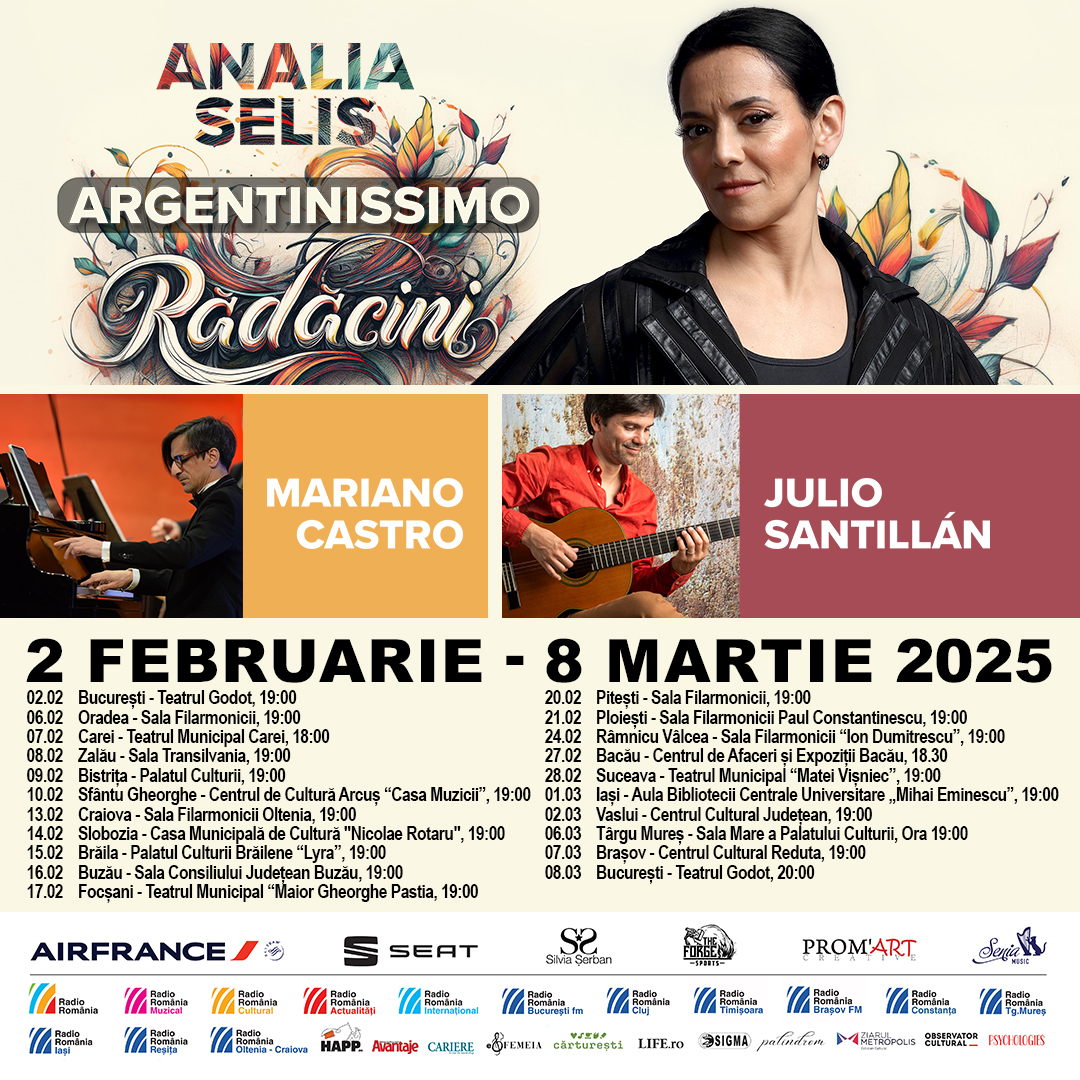 Pentru mai multe detalii despre turneul naţional „ARGENTINISSIMO, RĂDĂCINI”, consultaţi site-ul www.analiaselis.com