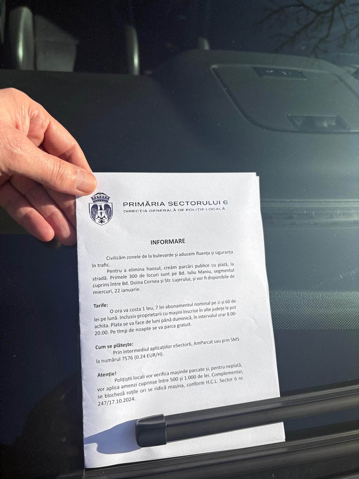 Prima parcare publică cu plată de la stradă, din Sectorul 6, se află pe Bd. Iuliu Maniu, între Bd. Doina Cornea și Str. Lujerului. Aceasta va putea fi utilizată inclusiv de către șoferii care circulă cu mașini înmatriculate în alte județe, chiar și pe timp de noapte.