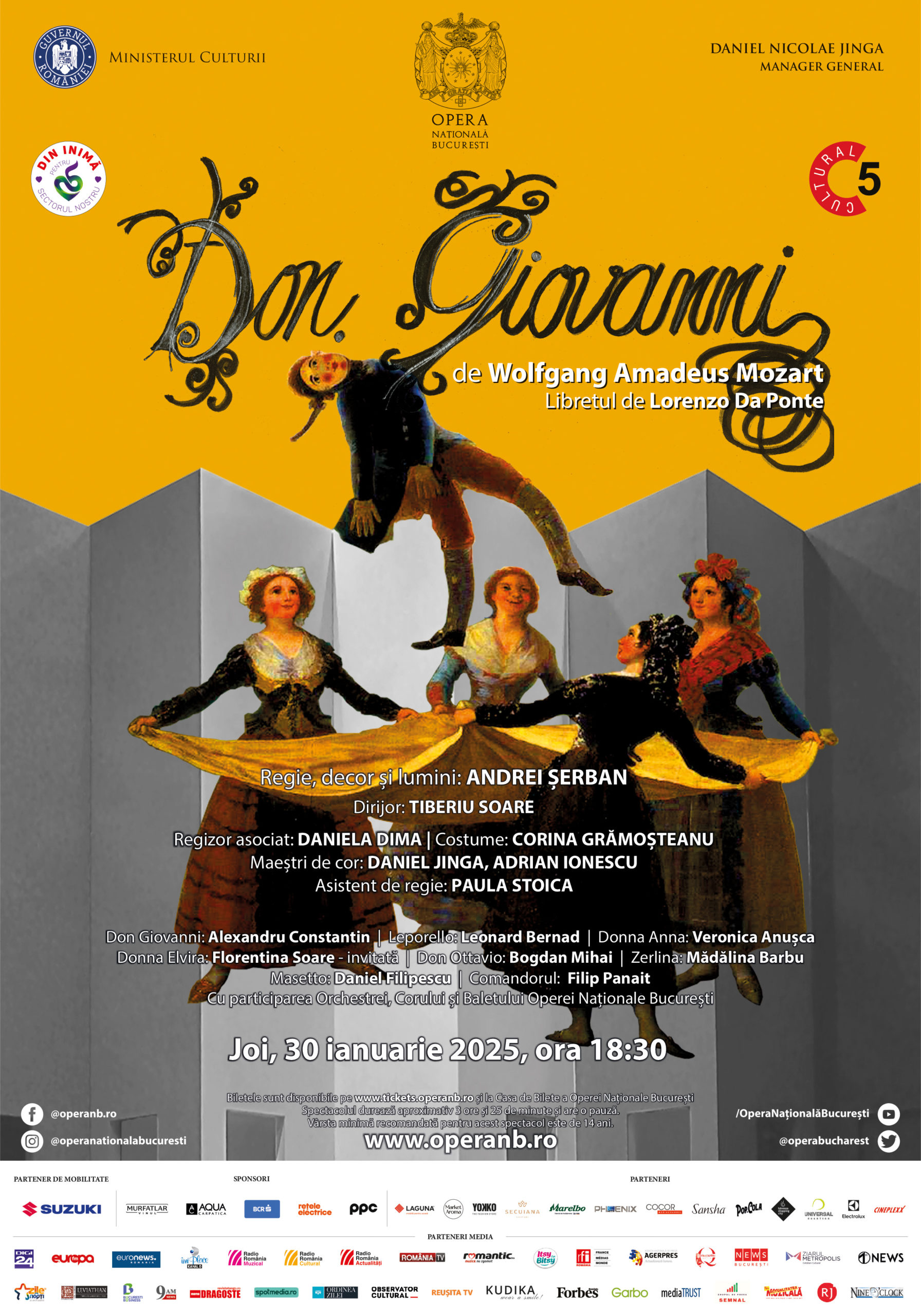 Final de ianuarie la Opera Națională București, cu o dublă reprezentație: Don Giovanni de Mozart