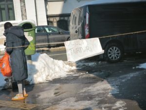 Circulând, în aceste zile de iarnă, prin oraș, pietonal, ca să nu creezi ambuteiaj în trafic și să nu te trezești că n-ai unde parca, pentru că locurile de parcare, și așa puține, sunt îngropate în zăpadă, te lovești, la tot pasul, de tot felul de sfori și alte bariere improvizate, întinse de-a latul trotuarelor. De ele, spânzură afișe, tot improvizate de tipul: “Cad Țurțuri”!