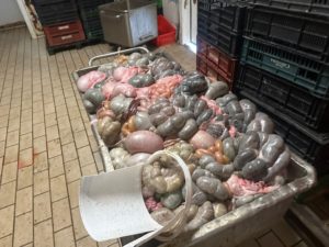 De asemenea, conveierul unde se recoltau intestinele prezenta mizerie în strat grosier, iar pereții erau murdari, cu exfoliere de vopsea, rugină pe zone întinse; panouri tip sandwich desprinse.