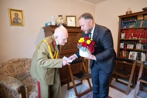 Primarul sectorului 2, Rares Hopinca, i-a facut o vizita, duminica, generalului (rtr.) Octavian Leru, care împlinește onorabila vârstă de 104 ani.