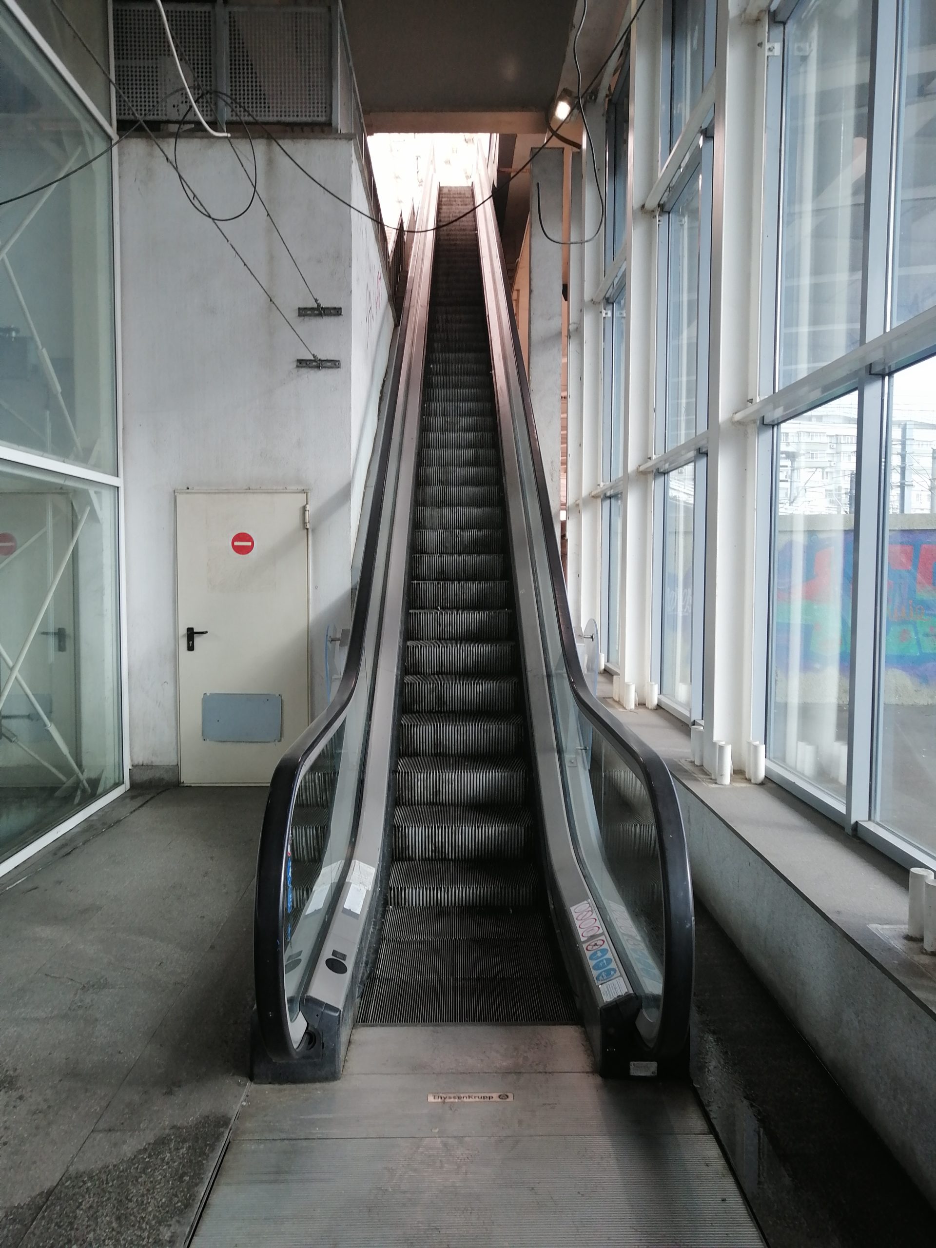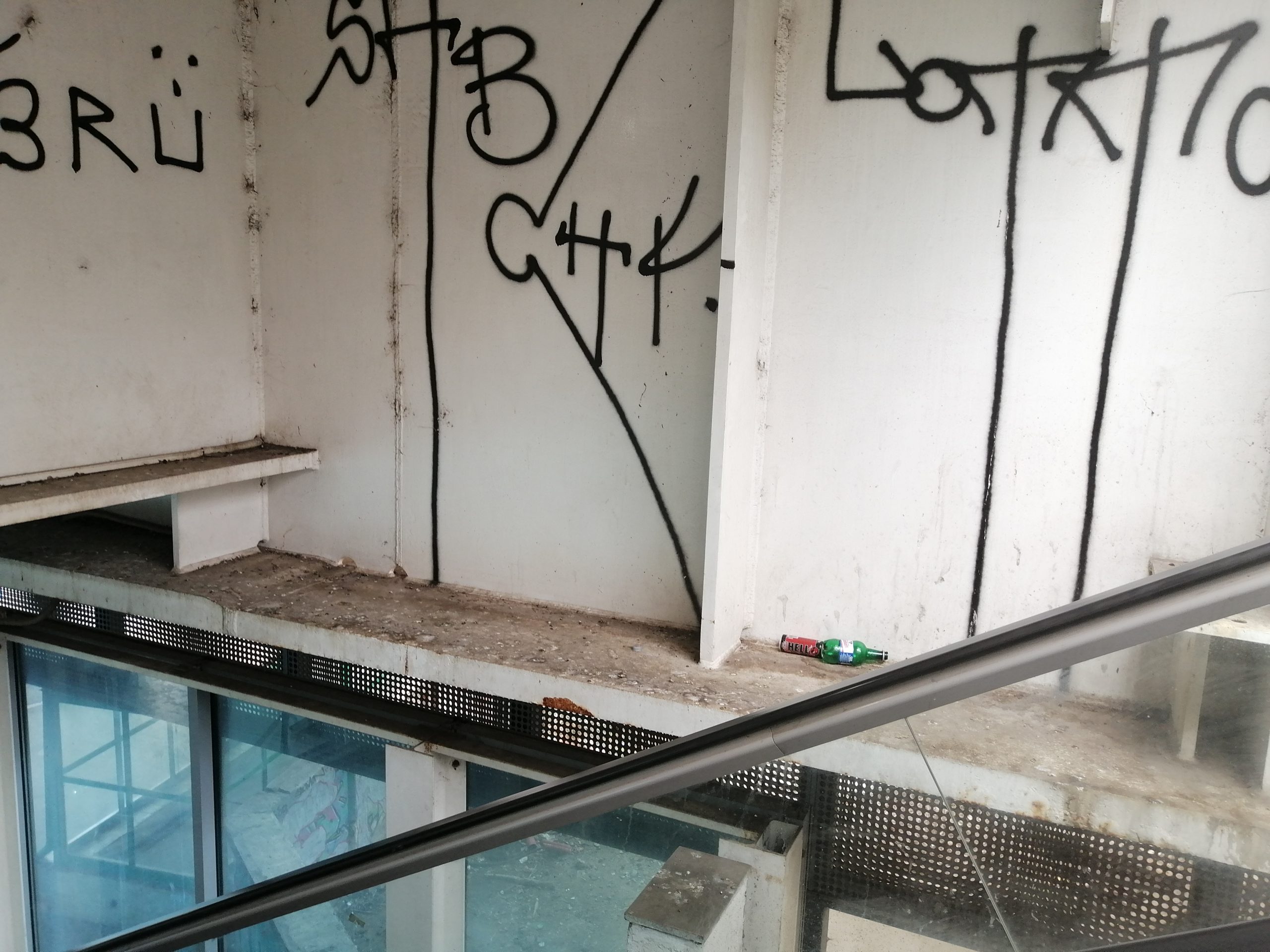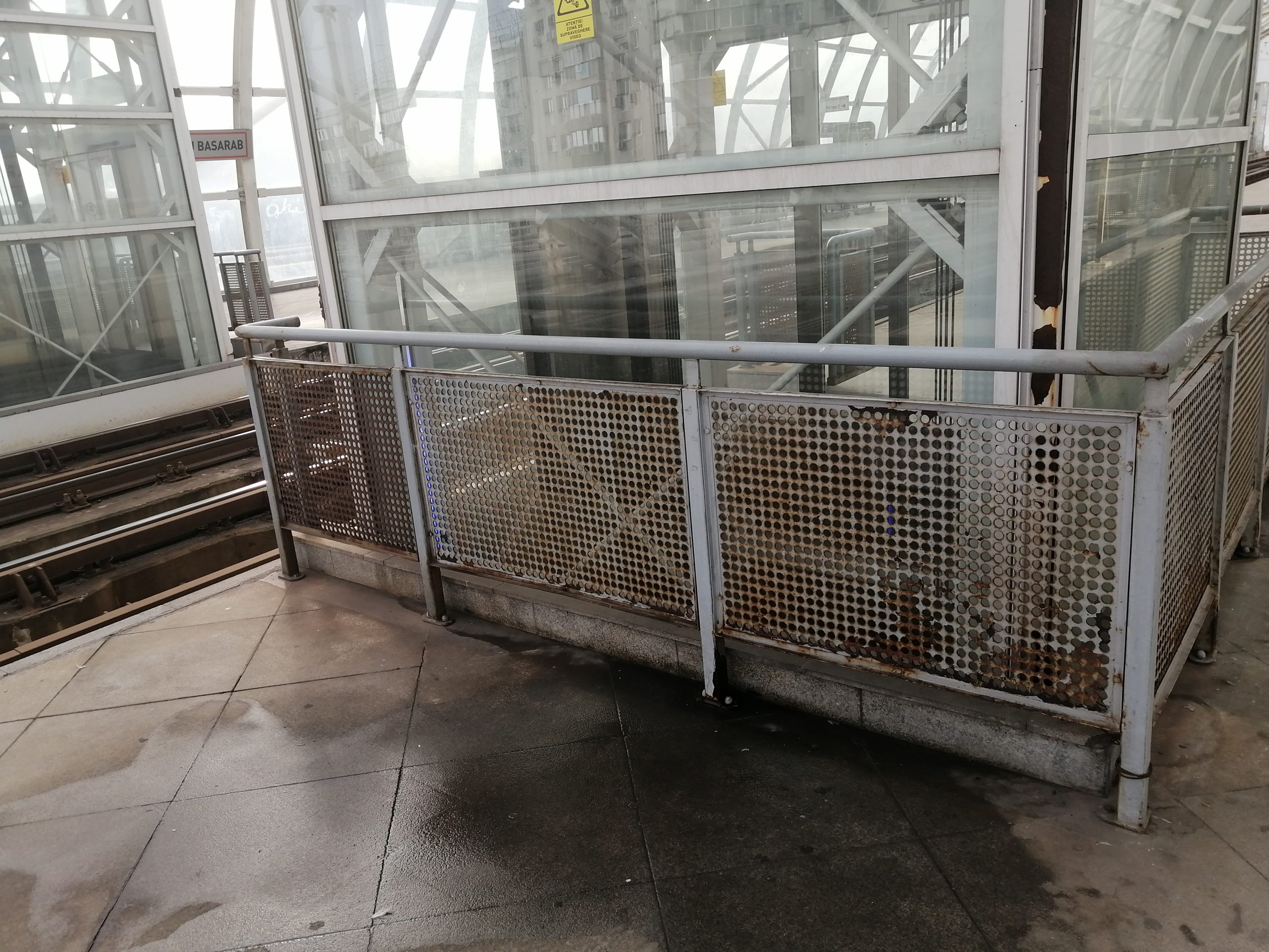 Porțiuni de rugină au ieșit la iveală, pe hobane și chiar pe cablurile dintre acestea. Lifturile mai mult nu merg, scările rulante sunt stricate, de ani de zile. Rugina se vede pe balustrade și pe părțile metalice, precum scările fixe de acces.