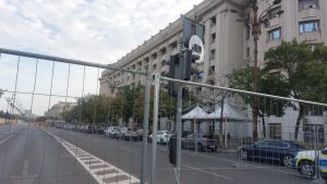 Constructorii lucrează la amenajarea scenei, tribunelor și a căilor de acces pentru concertul din Piața Constituției, iar zona este parțial blocată.