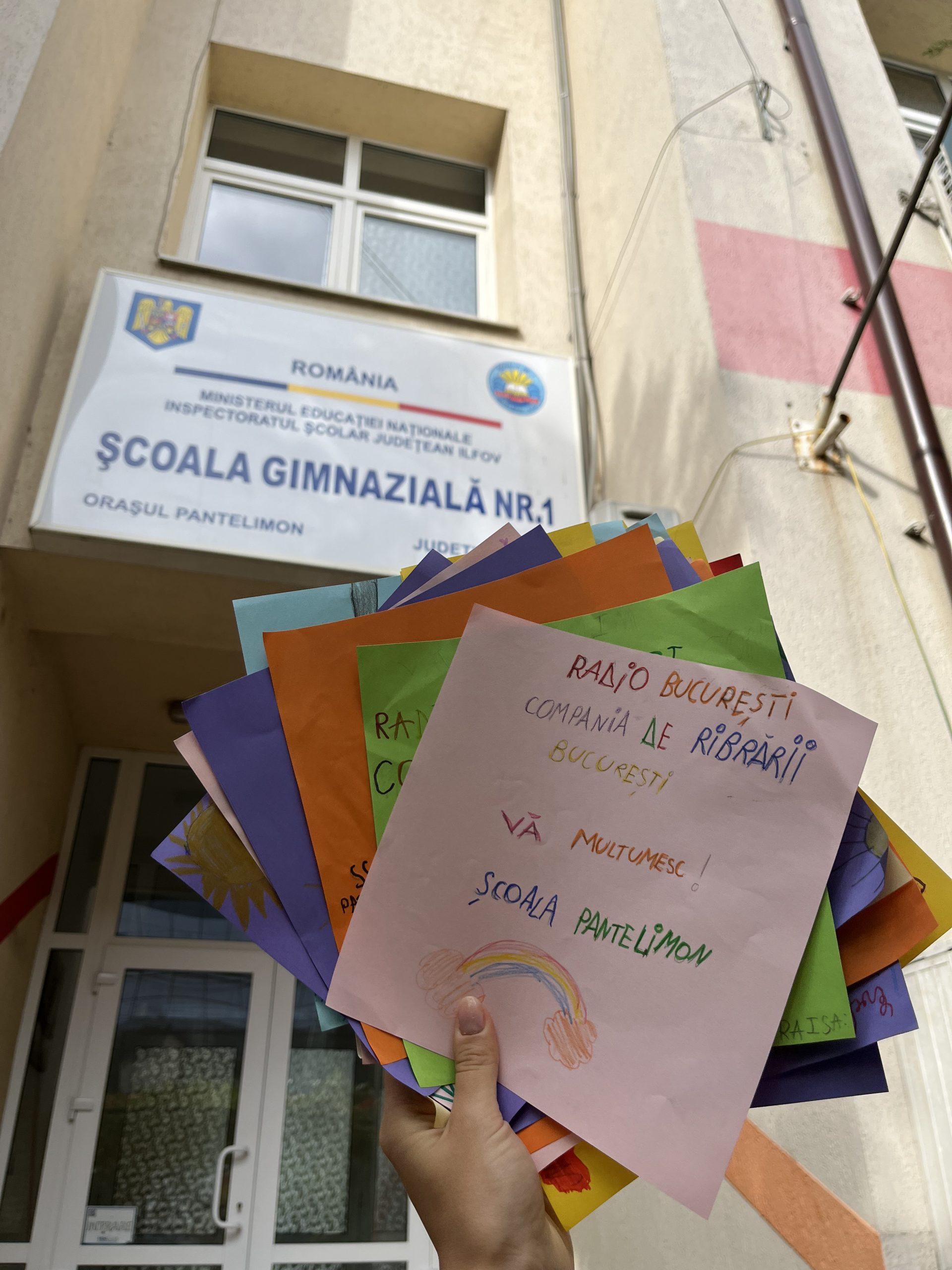 Elevii au așteptat cuminți și foarte entuziasmați. Au fost recunoscători și, în semn de mulțumire, ne-au răsplătit cu desene. Au început un nou an școlar cu forțe proaspete și rechizite noi din partea București FM!