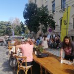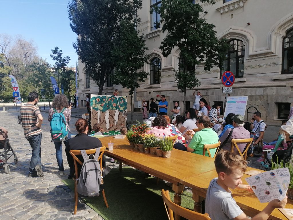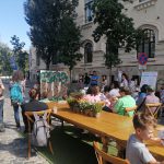 Copiii, alături de părinți, pot asista la spectacolele cu marionete și pot servi o gustare în aer liber.