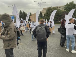 Alături de studenţi au venit şi reprezentanţii Federaţiei Sindicatelor Libere din Învăţământ, care în continuare strigă împotriva măsurilor luate în educaţie de Guvernul Bolojan, precum comasarea unităţilor şcolare, mărirea normei de predare, dar şi mărirea numărului de elevi la casă