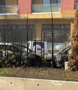 Incendiul la cele două autoturisme a fost stins la timp.