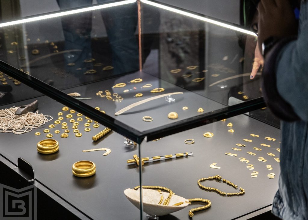 Expoziția este una spectaculoasă prin faptul că aduce, pentru prima dată la noi în țară obiecte de aur descoperite în necropolele varnaiote.