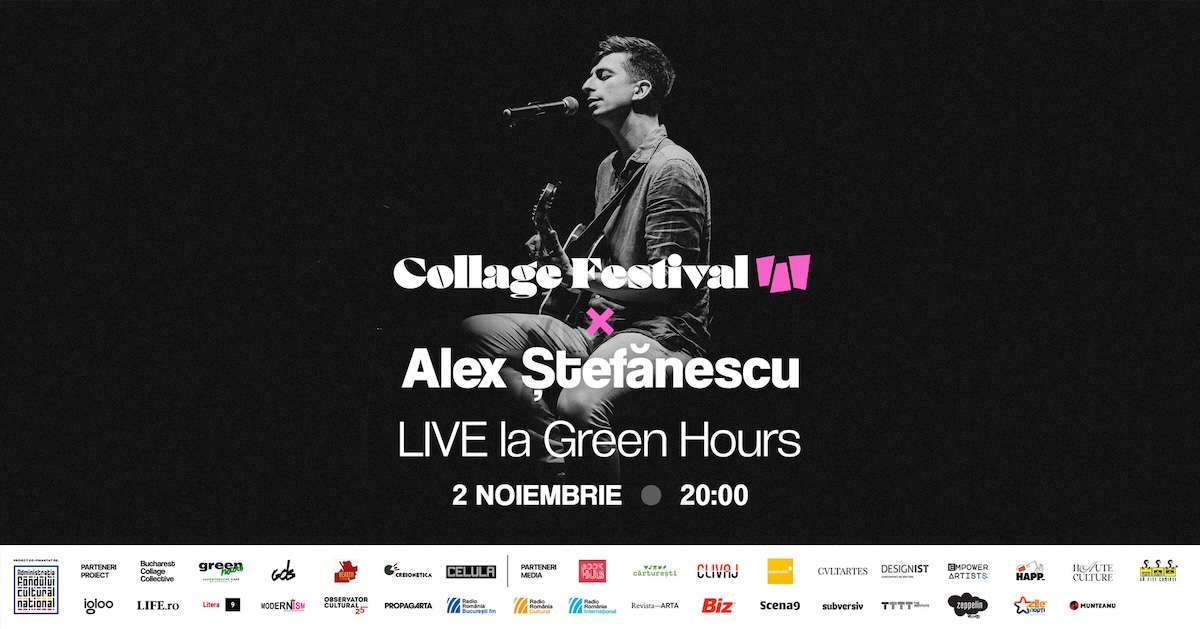 Collage Festival continuă experiența vizuală și sonoră a celei de-a treia ediții cu două evenimente speciale programate duminică, 2 noiembrie, la Green Hours (Calea Victoriei nr. 120, București). Publicul este invitat să se (re)întâlnească cu universul colajului printr-un tur ghidat în expozițiile festivalului și un concert acustic susținut de Alex Ștefănescu, într-o seară care îmbină arta vizuală cu energia live performance-ului.