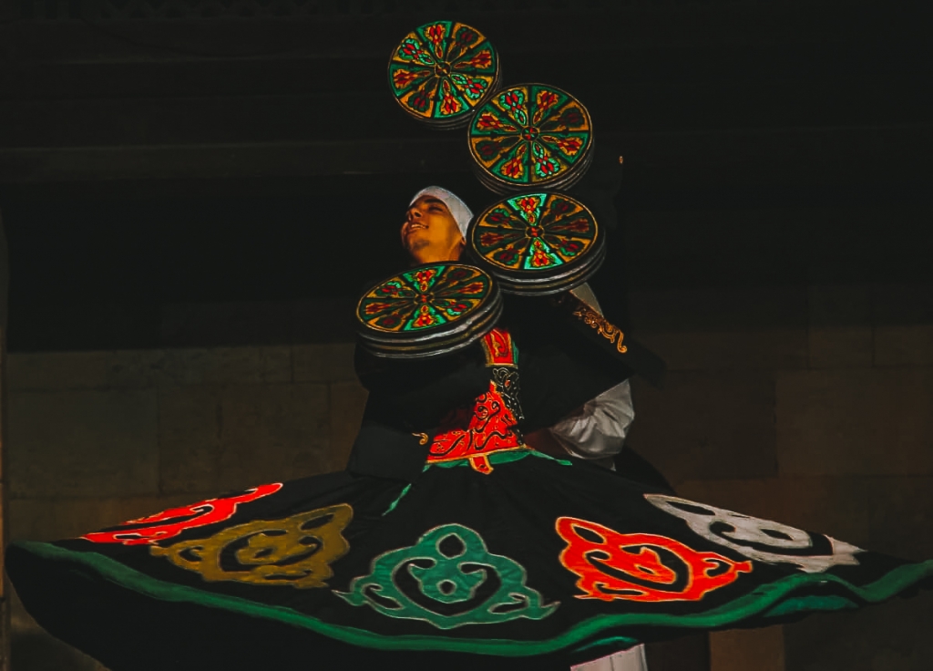 Veți avea ocazia să cunoașteți ”Tannoura Dance”, un dans popular tradițional inspirat din practica sufită a meditației prin mișcare. Dansatorul, numit derviș, se rotește neîncetat într-o stare de contemplație profundă, simbolizând căutarea echilibrului interior și a legăturii cu divinul. Cuvântul tannoura înseamnă fustă în limba arabă. Este parte din costumul specific al dansatorului, o piesă amplă, colorată, care prinde viață prin mișcările hipnotice ale rotirii. Fiecare strat al fustei are o semnificație simbolică, reprezentând elementele lumii și etapele călătoriei spirituale.