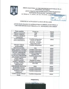 Candidaturile rămân definitive pe 23 noiembrie.