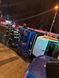Update 20.30: În eveniment a fost implicată şi o motocicletă, iar cele două persoane care se deplasau cu aceasta au refuzat transportul la spital.„Autoutilitara a fost repusă pe roţi, iar buteliile au fost transferate în alt mijloc de transport”, a transmis ISUBIF.