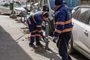 Primaria Capitalei, prin Administrația Străzilor, a securizat trotuarele, cu stâlpișori.