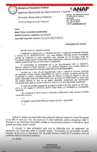 Am fost informat că toate aspectele referitoare la condiţiile preluării elicopterului au făcut obiectul unor comunicări oficiale cu Direcţia Generală a Vămilor şi ANAF, atât anterior, cât şi ulterior preluării acestuia de către IGAv.